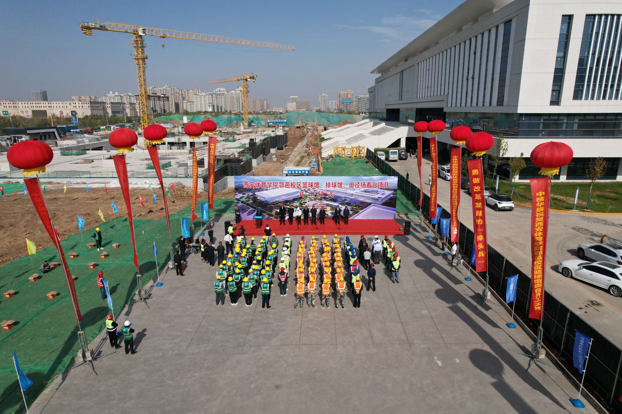鄠邑校区篮球馆、排球馆、田径场看台及附属用房项目的开工,是学校完善体育设施布局、提升办学硬件水平的关键举措,对促进教学训练、推动全民健身、服务区域体育事业发展具有重要意义。各方一致表示,将继续凝心聚力、密切协作,确保各项工程优质高效推进。