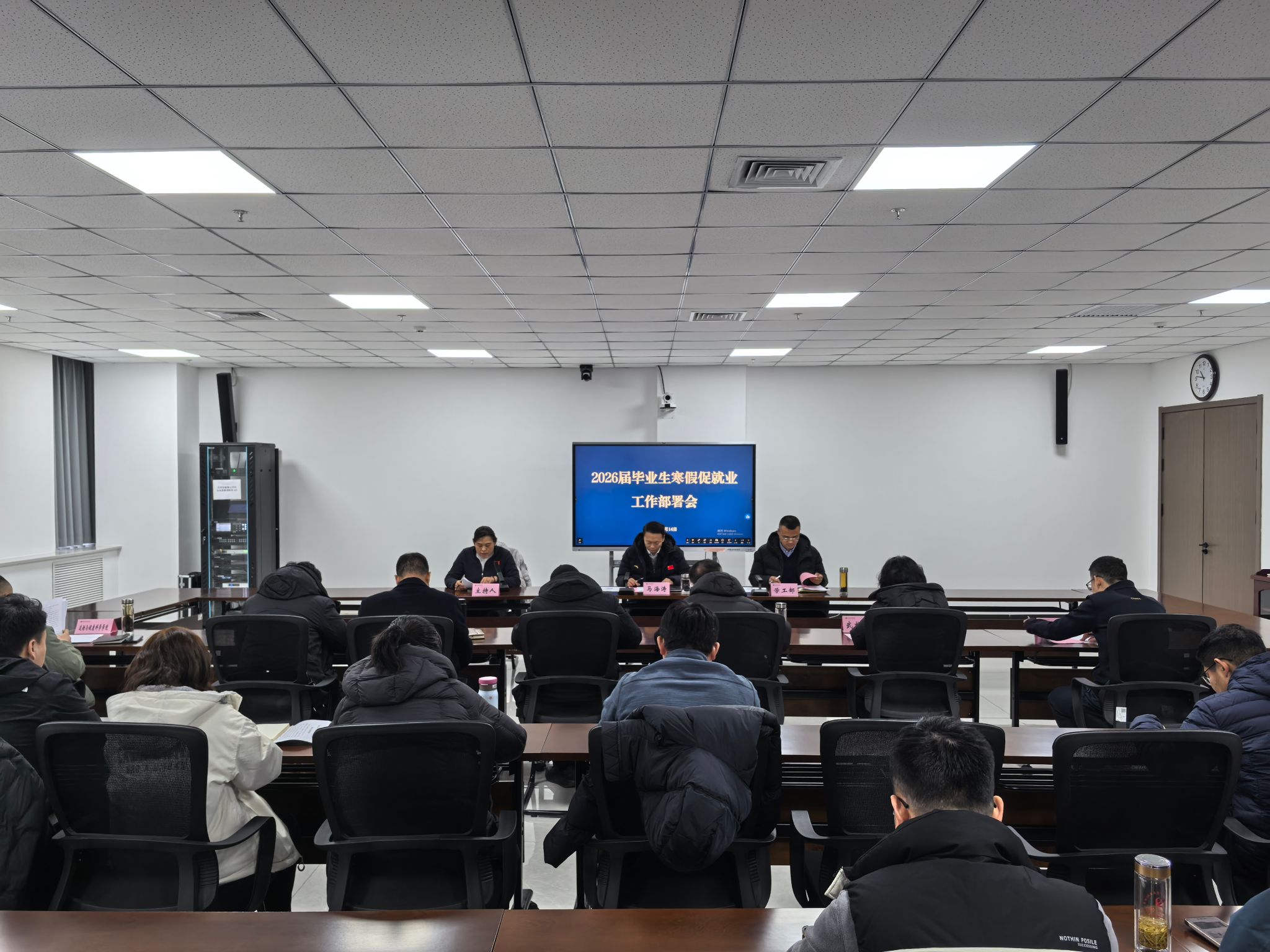 马海涛在讲话中强调,就业工作事关毕业生切身利益、学校办学声誉和国家人才培养大局,当前2026届毕业生就业工作已进入关键攻坚期,寒假作为就业服务的重要窗口期,对全年就业工作成效具有决定性影响。他对此次寒假促就业工作提出三点要求:一是提高政治站位,深刻认识就业工作极端重要性,落实“全员促就业”理念,形成协同发力格局;二是聚焦重点任务,严格落实两项专项行动,创新“集体访”“联合访”等访企模式,深化校企长效合作,精准推送岗位信息,做好就业困难毕业生“一对一”帮扶和征兵政策宣讲;三是坚守工作底线,如实填报就业数据,杜绝造假行为,学校将强化绩效考核与监督问责。