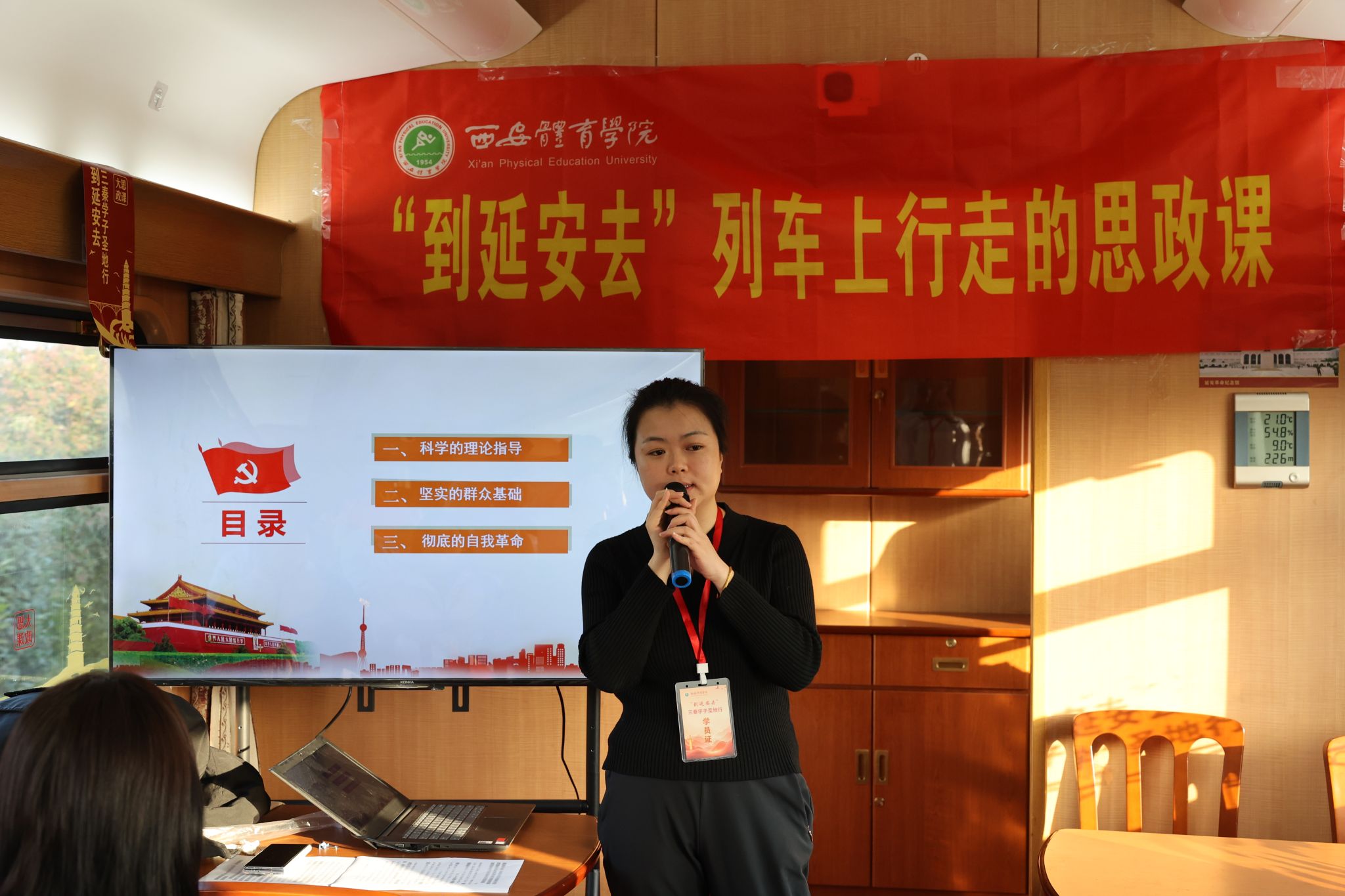 体育教育训练学院研究生辅导员李婷讲授了以延安精神为主题的“列车上行走的思政课”,师生们对革命圣地充满崇敬与向往,为后续的实践活动筑牢了思想基础。