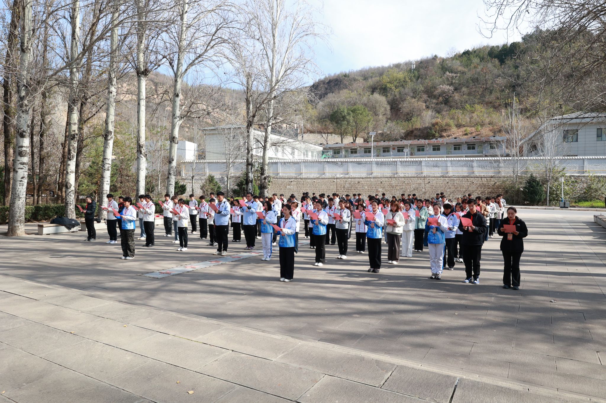 在张思德纪念广场,全体学员怀着崇敬的心情,在领诵员许志昂、冯汉译两位同学的带领下齐声诵读《为人民服务》全文,铿锵誓言回荡苍穹,深刻体会到“为人民服务”如何从黄土高原上的宣言,融入党的血脉,成为一代代共产党人的行动自觉。