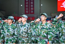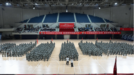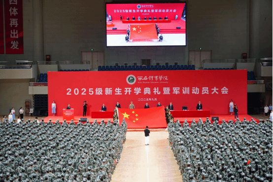 9月8日,2025级新生开学典礼暨军训动员大会在鄠邑校区手球馆举行。