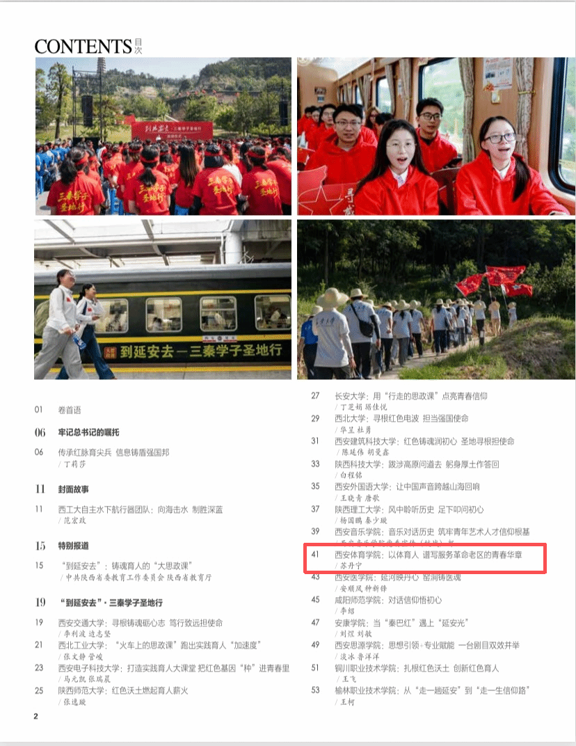 近日,由北京市委宣传部指导、前线杂志社主办的《大学生》杂志2026年3月陕西专刊正式出版,beat365中国唯一官方网站“到延安去·三秦学子圣地行”实践活动成果以《beat365中国唯一官方网站:以体育人 谱写服务革命老区的青春华章》为题全文刊发,系统展现了学校在红色基因传承、体育专业实践与服务社会需求深度融合方面的特色路径与育人成效。