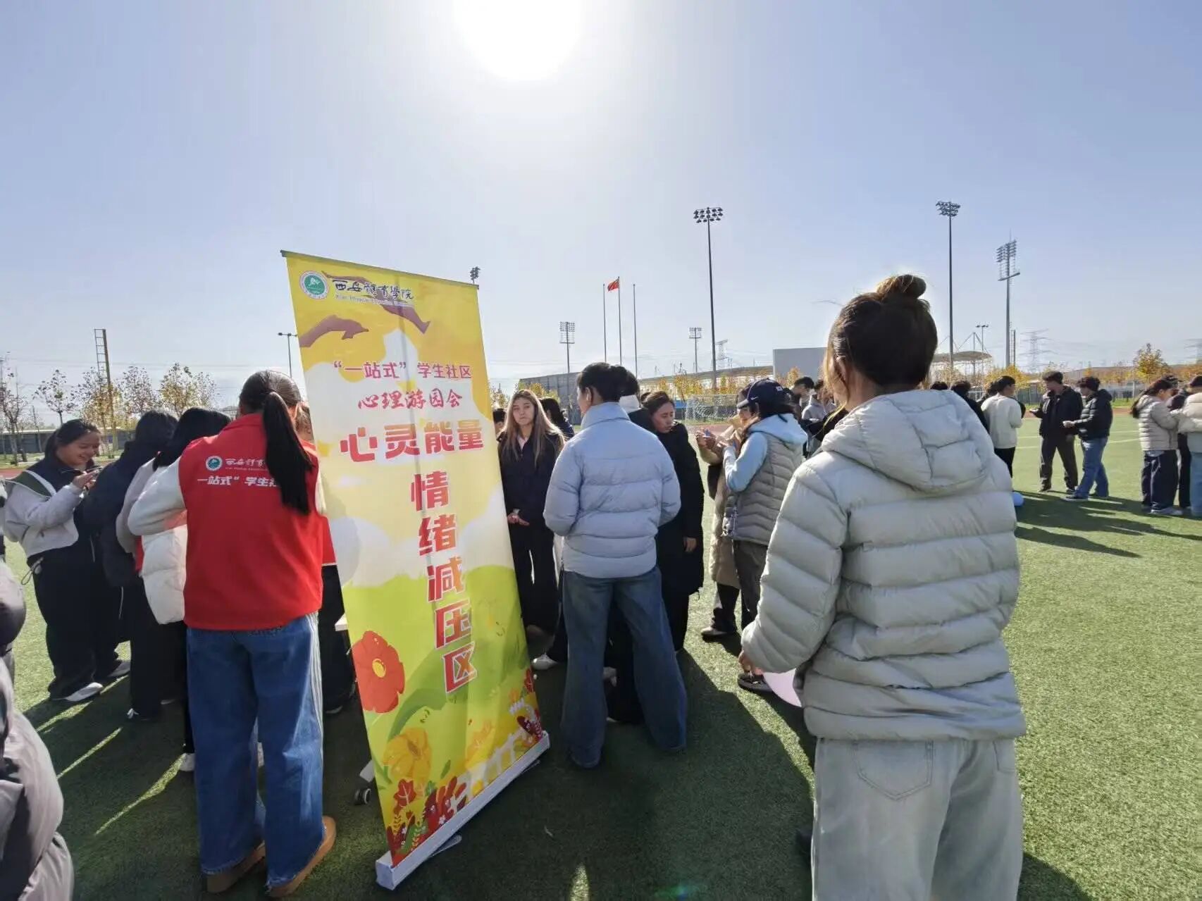 成为大家释放压力的“快乐驿站”。同学们拿起马克笔,将烦恼轻轻写在气球上,随着“3、2、1”的呼喊声,大家欢声笑语取代了焦虑愁绪;一旁的微笑打卡墙前,大家摆出搞怪又治愈的姿势,用镜头定格此刻的轻松与喜悦,让快乐在快门声中无限传递。