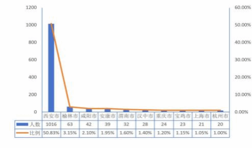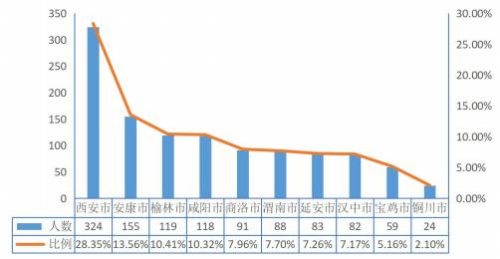 1 | 陕西省 | 1003 | 48.52% | 140 | 33.73% | 1143 | 46.05% |