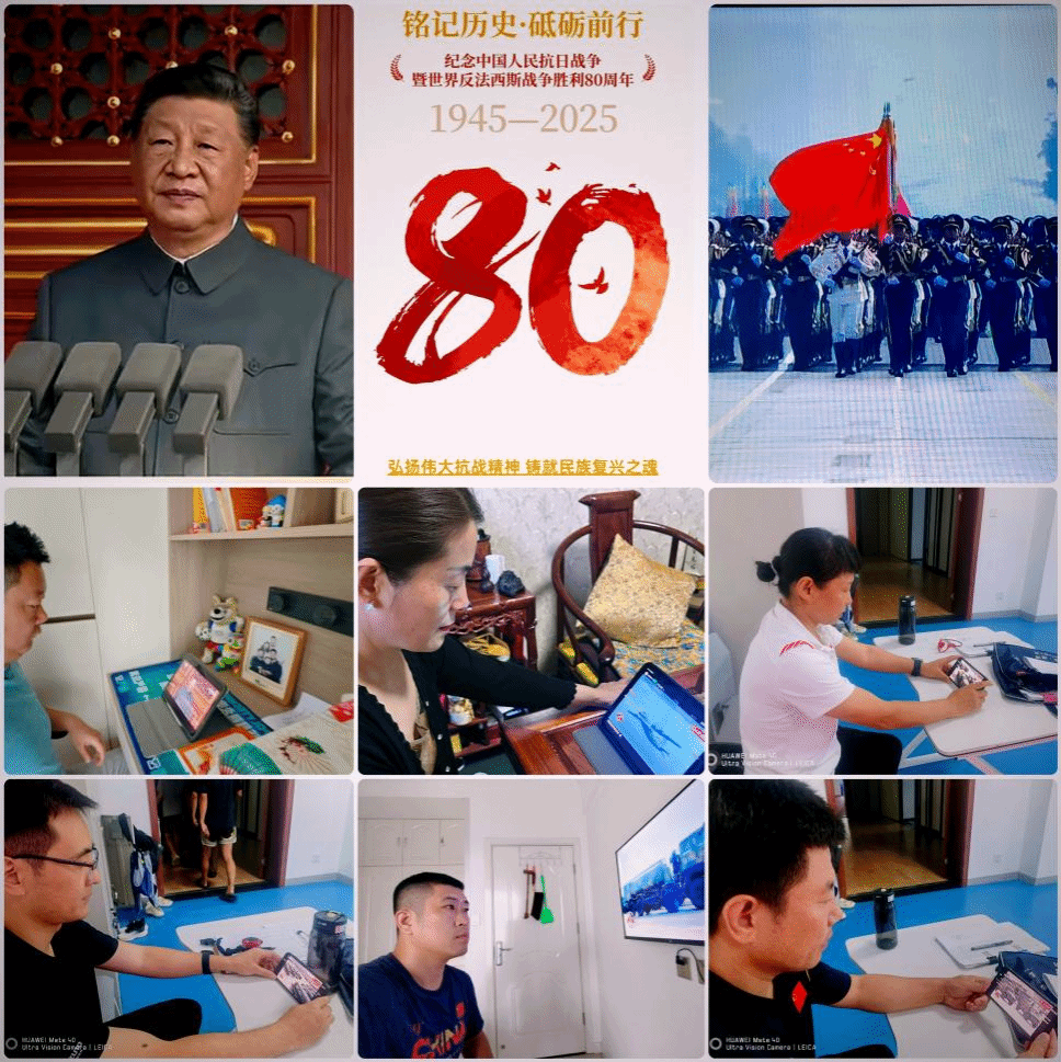 各教研室教师也纷纷利用课余时间采取多种形式收看学习纪念中国人民抗日战争暨世界反法西斯战争胜利80周年大会直播。