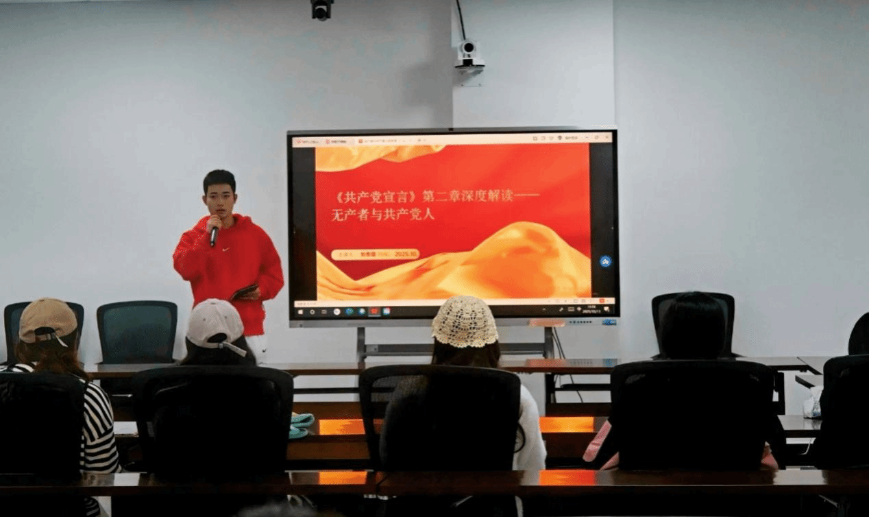 四位同学的分享角度各异,层次分明,既有对文本原意的细致梳理,也有结合时代背景与现实的深刻反思,将这部跨越170余年的经典著作所蕴含的真理力量与实践伟力生动地呈现出来。在自由交流环节,台下同学踊跃提问,与分享者就理论困惑、现实启示等进行了热烈而深入的探讨。在总结点评中,支部书记李阳老师肯定了同学们深厚的理论素养与热烈的交流氛围,展望下一阶段的读书活动,勉励大家继续保持这份研读经典的热情,让思想的火花薪火相传,历久弥新。