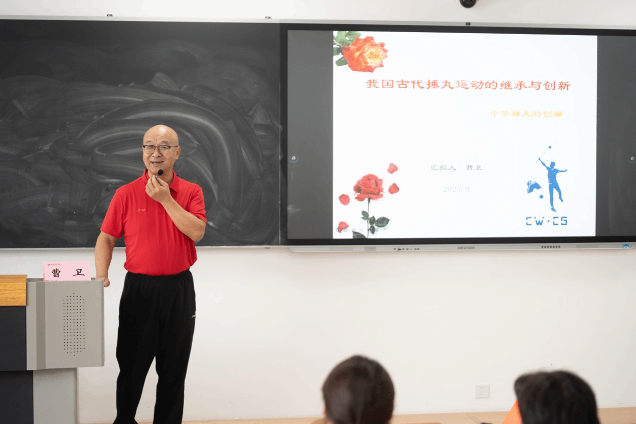在教学楼308教室,曹卫教授以《中国古代捶丸运动继承与创新》为题,带来了一场高水平的学术讲座。曹教授回顾了捶丸运动的历史渊源,阐释了其在唐宋时期的演变与《丸经》等古籍记载,并结合现代体育发展的需求,介绍了“中华捶丸”的创编理念。他详细展示了捶丸在器材设计、比赛设置、技术动作、场地灵活性等方面的创新实践,强调该运动低成本、环保、大众化的优势,既有助于弘扬中华优秀传统文化,也为全民健身和高校体育课程建设提供了新的思路。